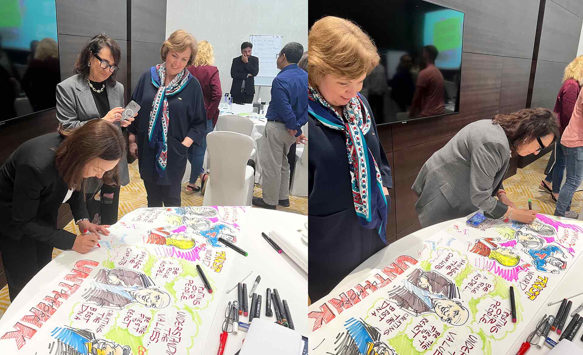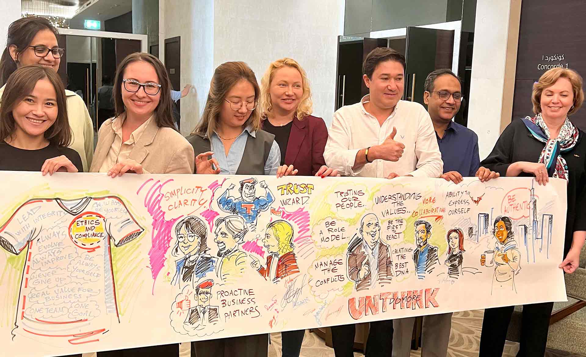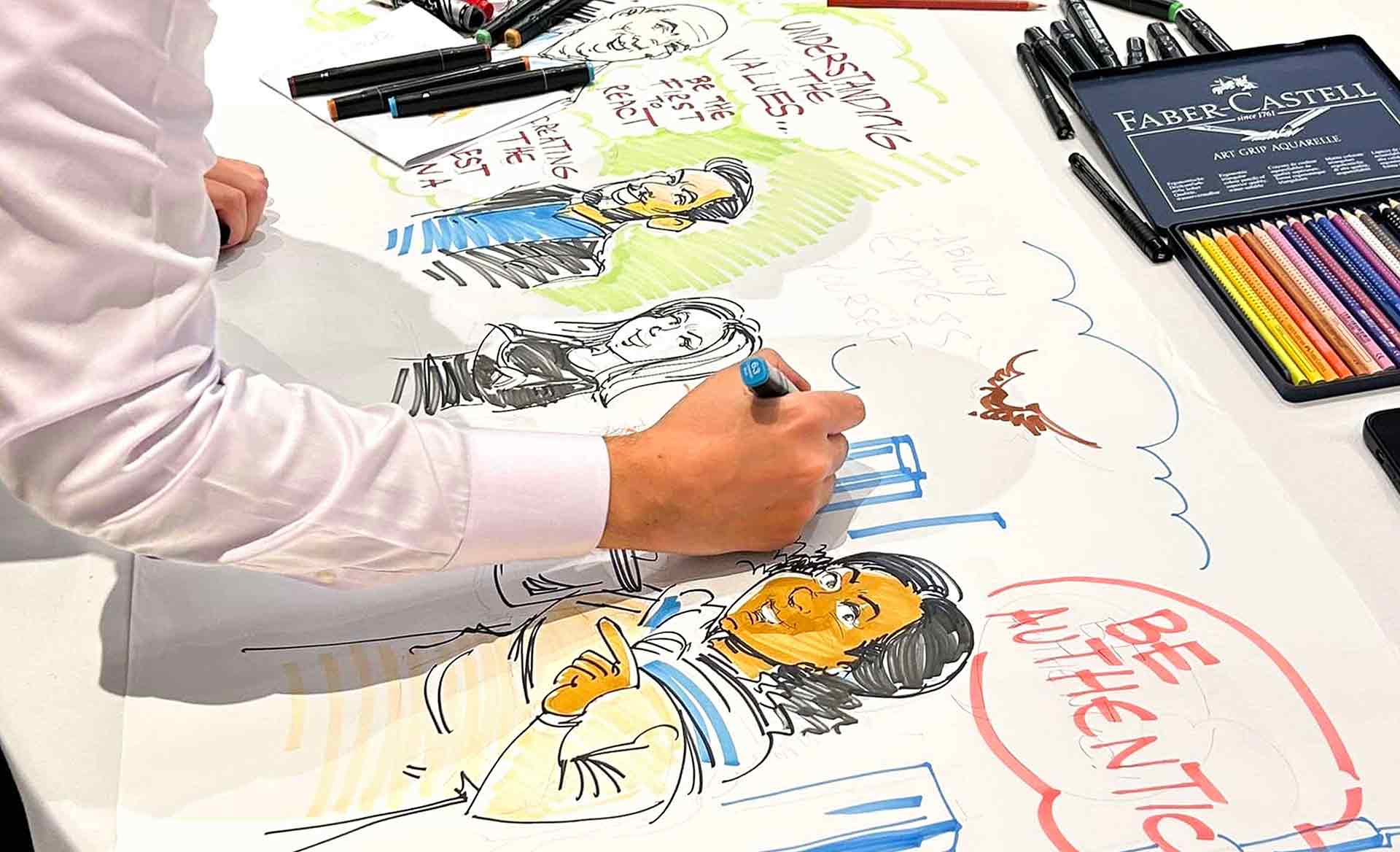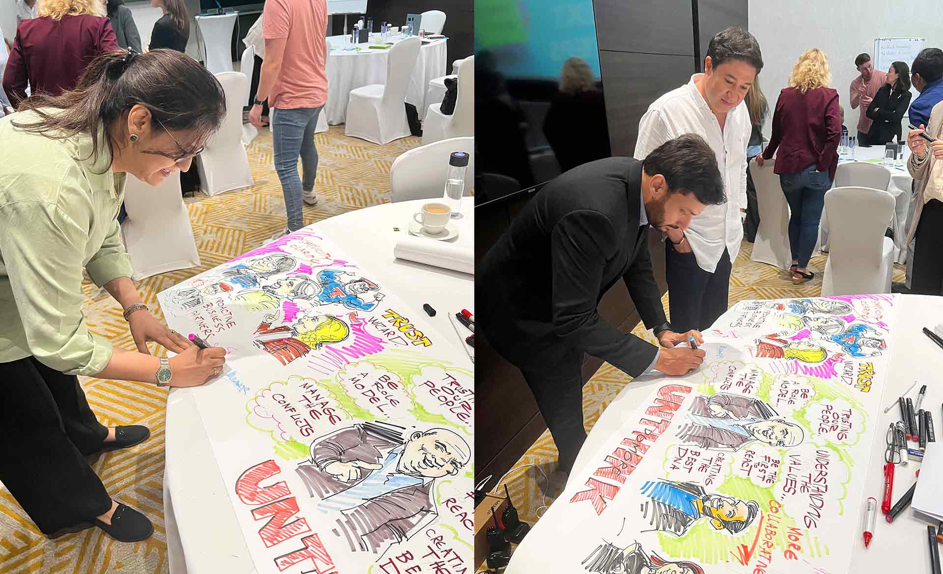 اطلعوا على عملنا بالشراكة مع وكالة أنثينك في القمة السنوية للقيادة لشركة فيون في دبي. قام فريقنا بتوثيق جلسة العمل التي عُقدت في فندق سوفيتيل دبي ذا أوبليسك باستخدام الأسلوب التقليدي للرسم بالحبر على الورق