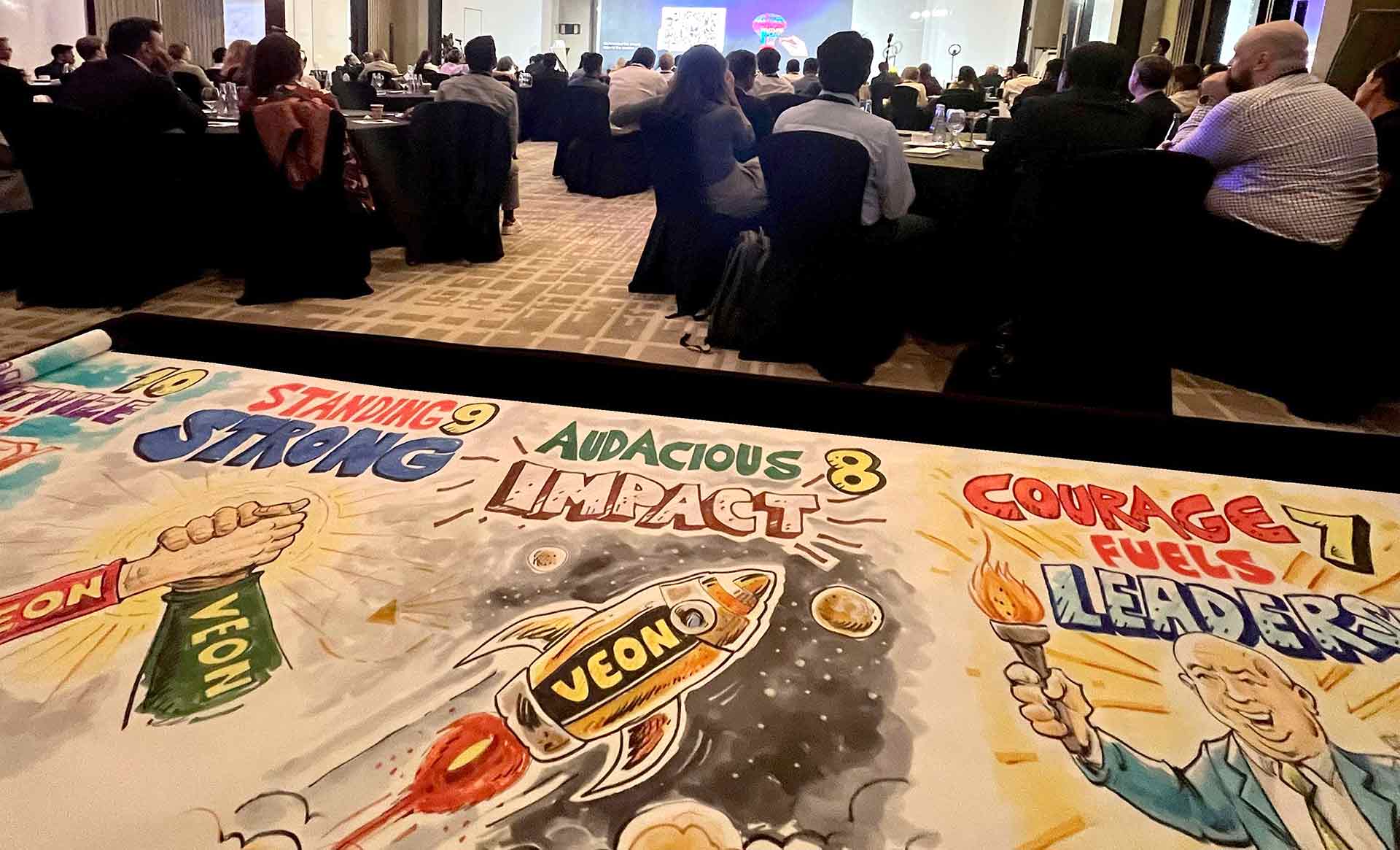 اطلعوا على العمل الذي قدمناه لجلسة القيادة لشركة فيون بالشراكة مع وكالة أنثينك البريطانية لتصوير إطار العمل الجديد للشركة عن طريق توثيق الأفكار والاستراتيجيات بصريًا في فندق لو رويال مريديان، جي بي آر دبي