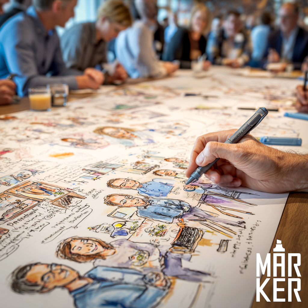 At Marker.ae, we take this idea even further through graphic recording — a visual method that captures your team’s discussions, ideas, and strategies in real time. As a result, your event becomes a shared story your team can see, discuss, and remember.